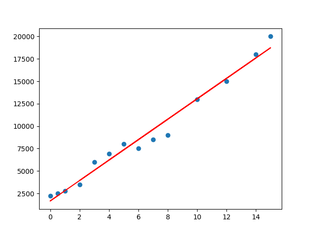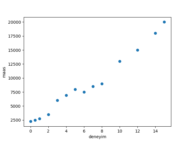 Örnek olarak Yukarıdaki veri setiyle bir işlem yapalım. Bir grafik çizdirdiğimizde deneyim ve maaş arasındaki ilişkiyi çıkarmaya çalışalım. Bu ilişki arasında öyle bir line fit çizelim ki bundan sonraki değerlerde de bu cevabı kullanalım.